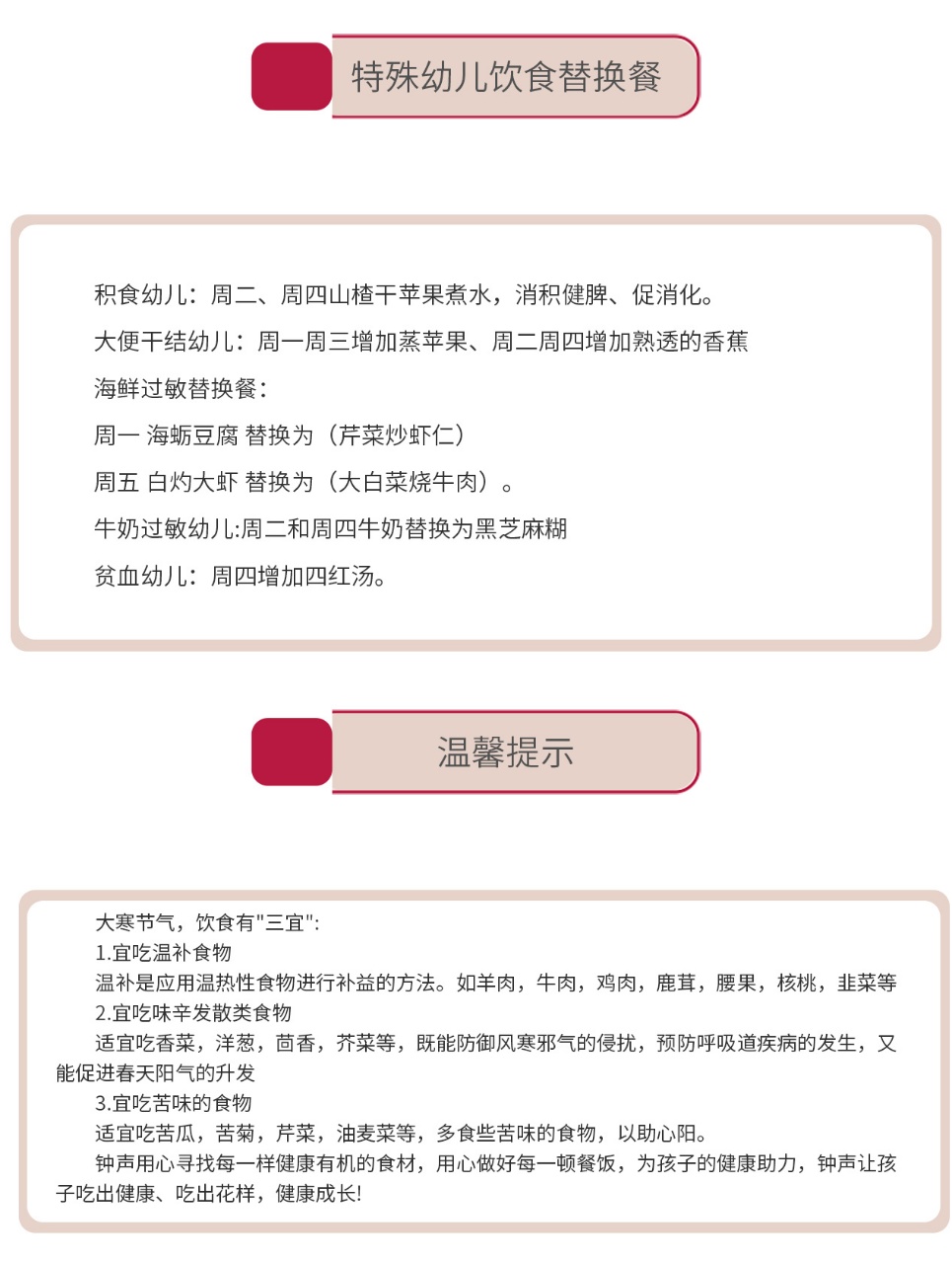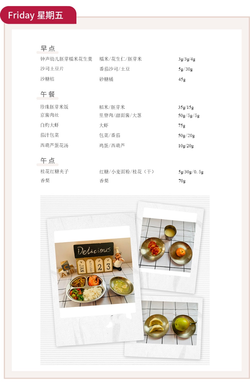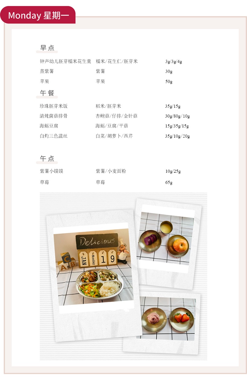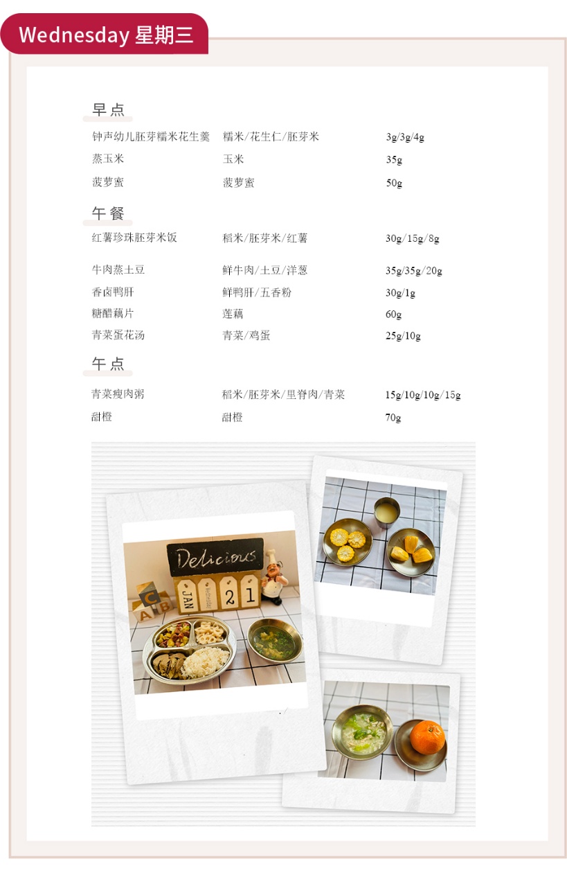 一碗好饭,是能量的坚实基底。本周我们继续为孩子们准备了香软的珍珠胚芽米饭。同时,特别加入了红薯珍珠胚芽米饭,天然的甘甜与米香交融,带来别样的味觉体验与温暖色彩。此外,备受喜爱的咖喱鸡米饭也将浓香回归,让孩子们在期待中胃口大开。