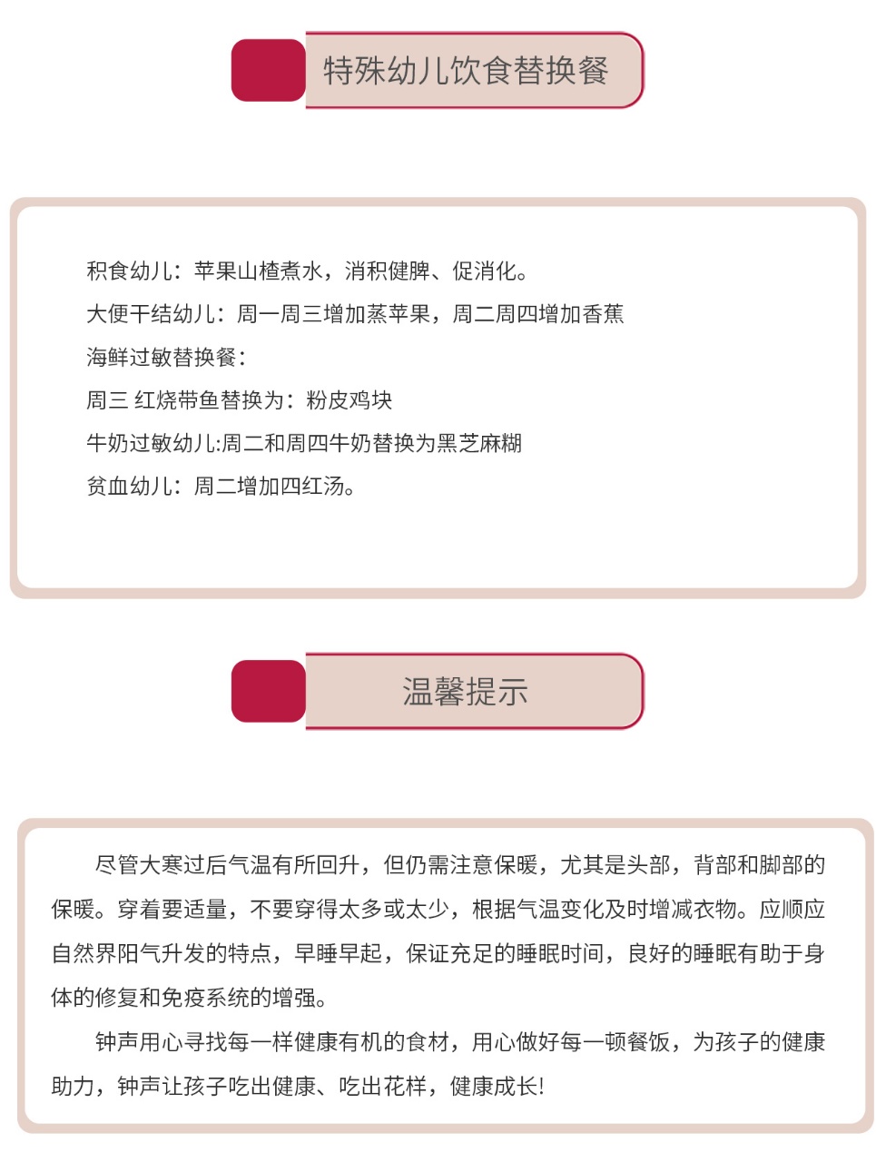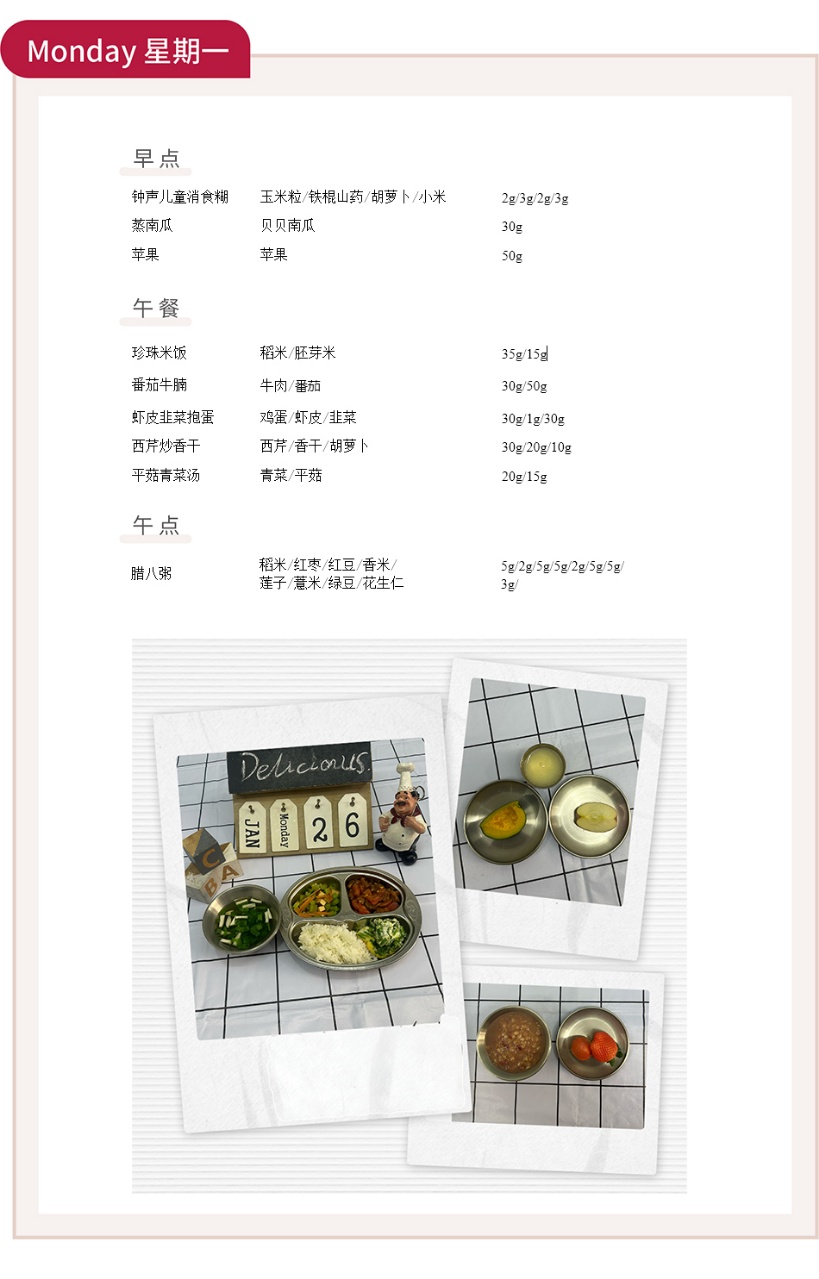 一月的光阴行至尾声,我们的“冬日暖食”旅程也迎来了充满温情与惊喜的收官之周。钟声幼儿园的厨房,依然是最温暖的创意工坊。这一周,我们撷取大地的丰饶与海洋的鲜美,将家常风味与创意搭配巧妙融合,为孩子们的餐桌谱写一月份最后的美味篇章。