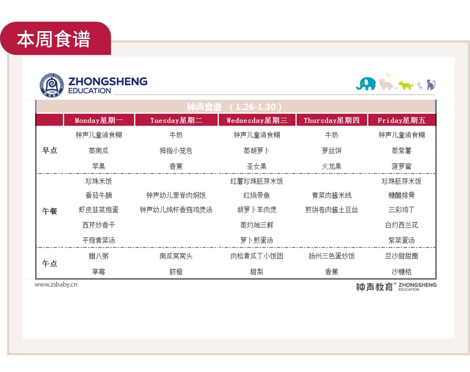 一周吃啥早知道|钟声快乐园