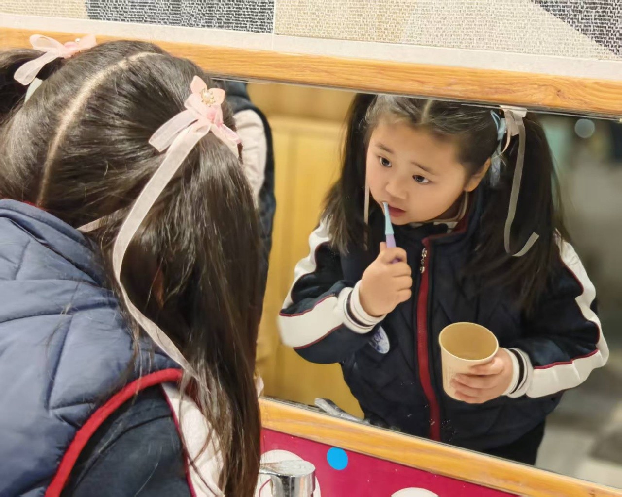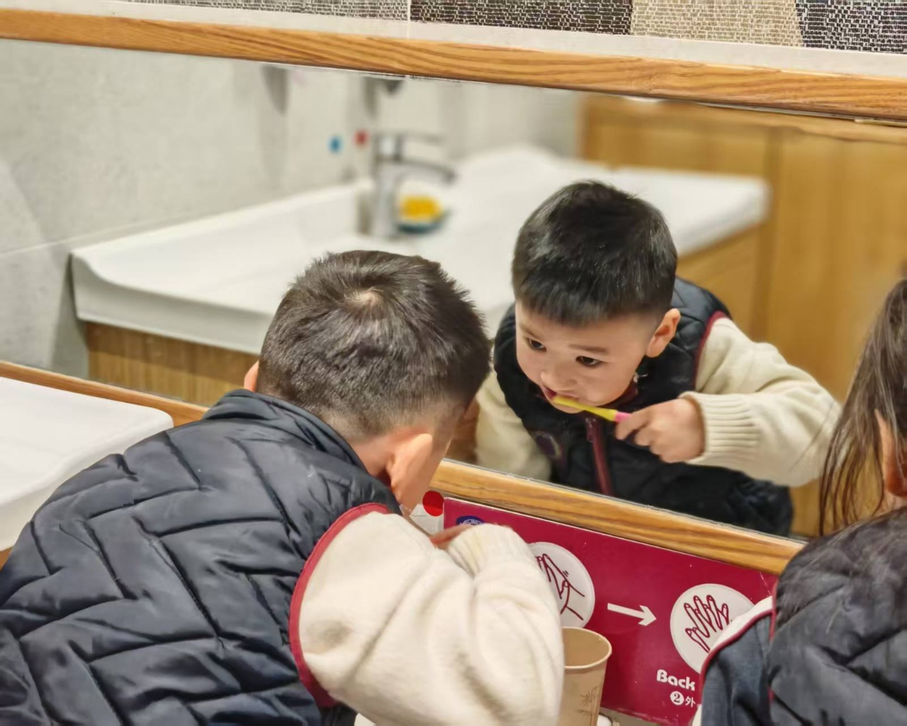 电影散场,真正的“独立”挑战才正式开始。在老师的引导下,孩子们有序地拿着自己的小脸盆和牙具,开始洗漱。他们认真地刷牙、洗脸,虽然偶尔会弄湿袖子,但那份“自己的事情自己做”的郑重模样,让人动容。当一双双小脚丫泡进温热的水里,一天的兴奋与疲惫仿佛都得到了抚慰。