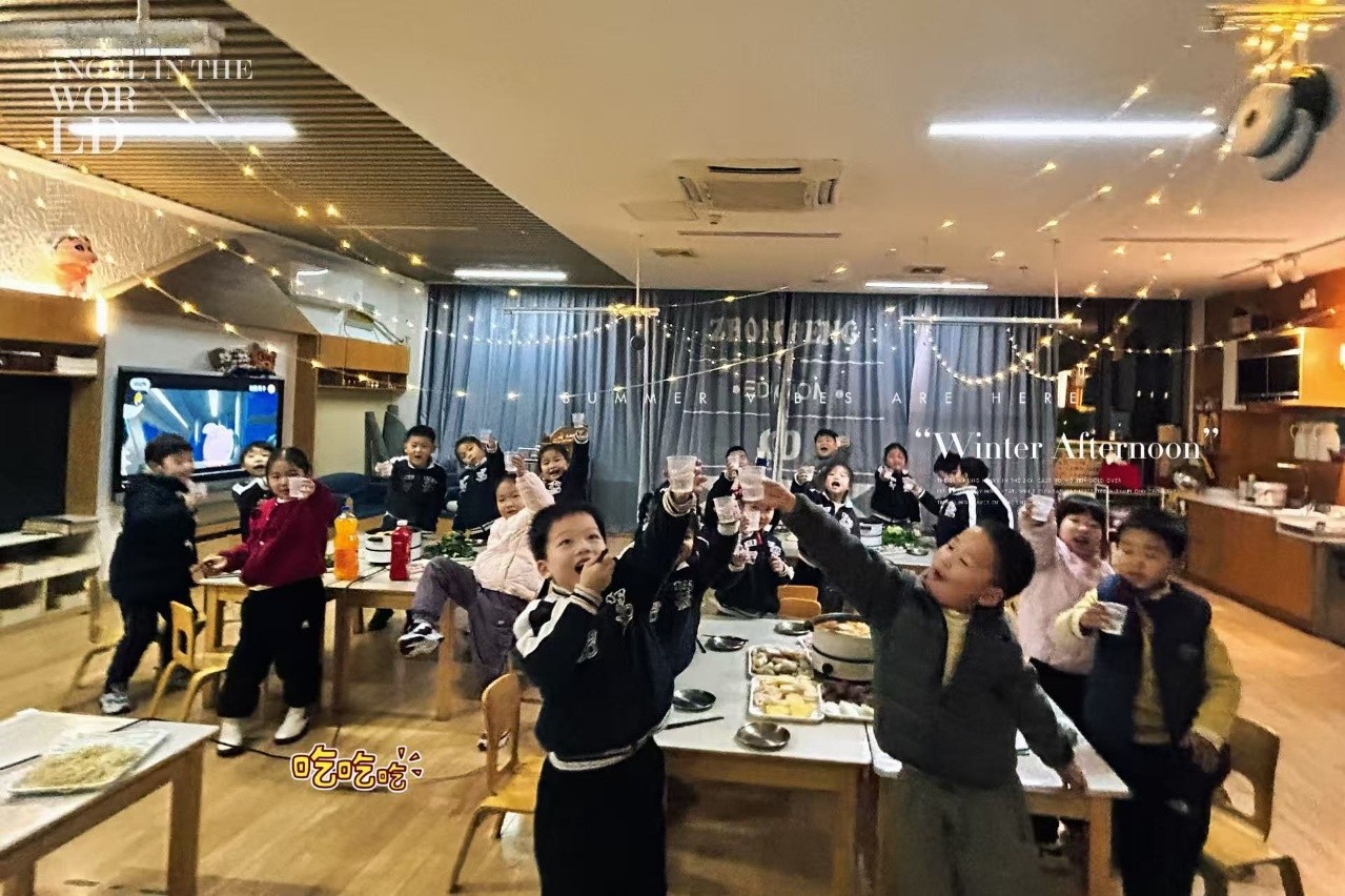 活动的序幕,从一顿热气腾腾的自助小火锅开始。这不仅仅是晚餐,更是孩子们自主选择的第一次集体实践。他们小心翼翼地挑选着自己爱吃的蔬菜、丸子,和小伙伴们围坐一桌。锅里咕嘟咕嘟冒着泡,升腾的热气映照着每一张兴奋的小脸。没有爸爸妈妈的帮忙,他们自己夹菜、互相提醒“小心烫”,在分享与照顾中,感受到了 “我们是一个团队” 的温暖与力量。