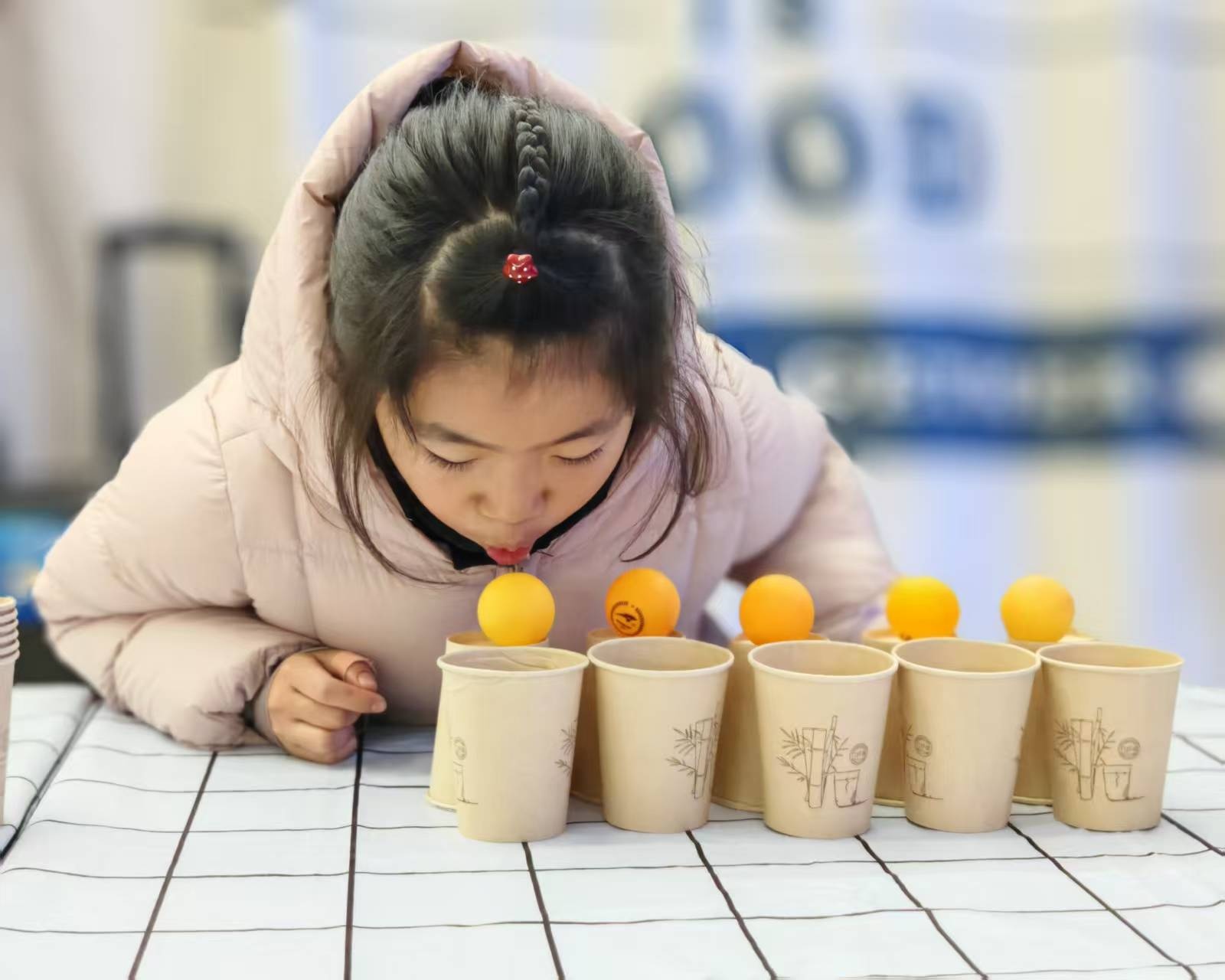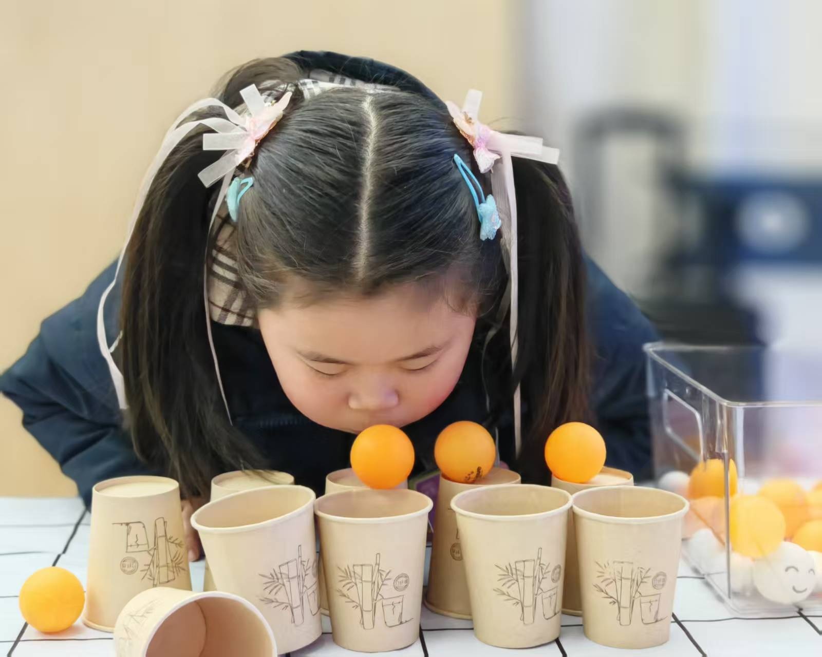 晚餐后的能量,在趣味游戏中彻底释放。最受欢迎的莫过于 “吹乒乓球过河” 比赛。孩子们鼓起腮帮,全神贯注地让那颗小小的球跨越一个个水杯。成功了,便和同伴击掌欢呼;失败了,也毫不气馁,哈哈大笑后重头再来。这一刻,胜负已不重要,重要的是他们全力以赴的专注和面对挑战的乐观。