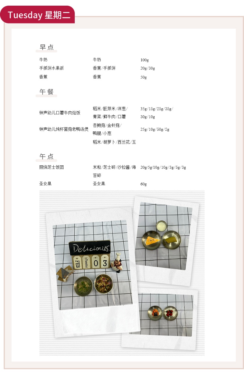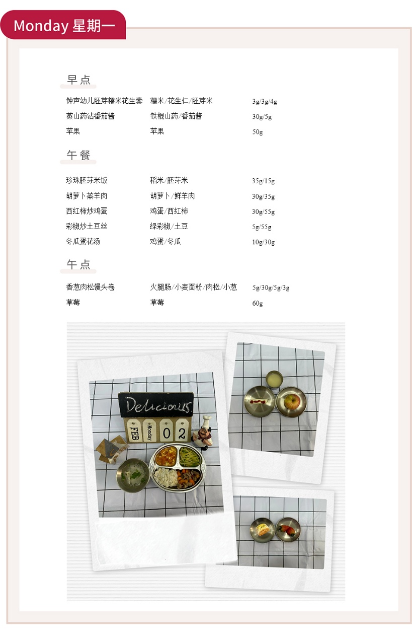 新岁启程,钟声幼儿园始终以科学膳食为笔,为孩子们的成长画卷添上温暖底色。2月第一周,我们从食材选择到营养配比,都藏着对宝贝们的用心守护,让每一餐都成为成长的能量补给站。