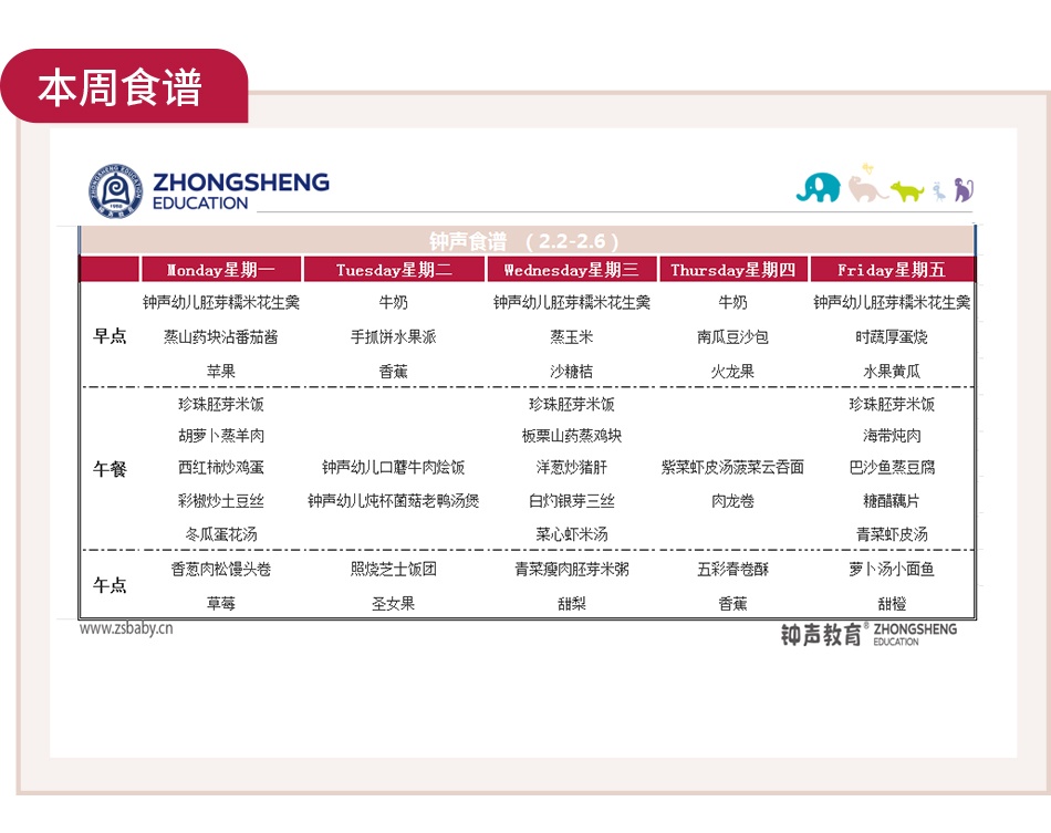 一周吃啥早知道|钟声快乐园