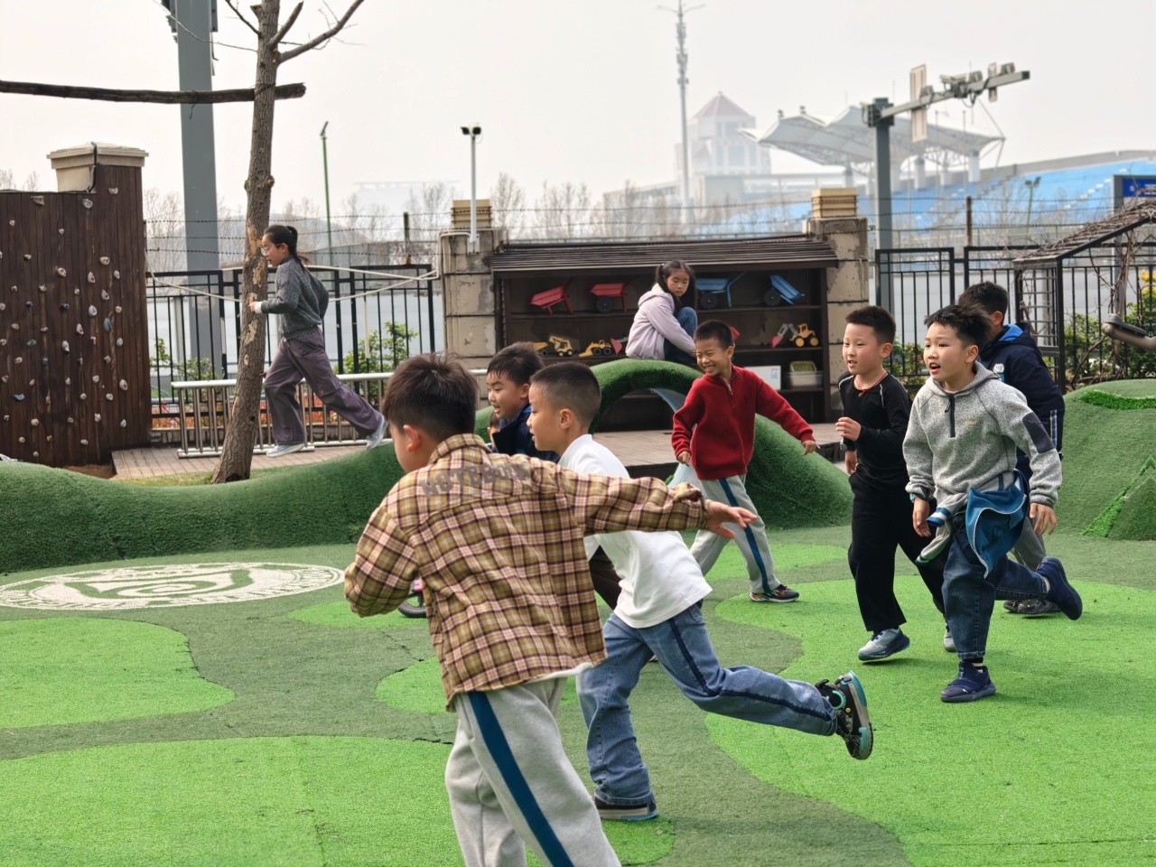 “这个滑梯我小时候每天都要滑好多次!”“攀爬架我那时候不敢爬,现在一下子就上去啦!”阳光下,孩子们奔跑着、欢笑着,仿佛又变回了当年的那个小小身影。